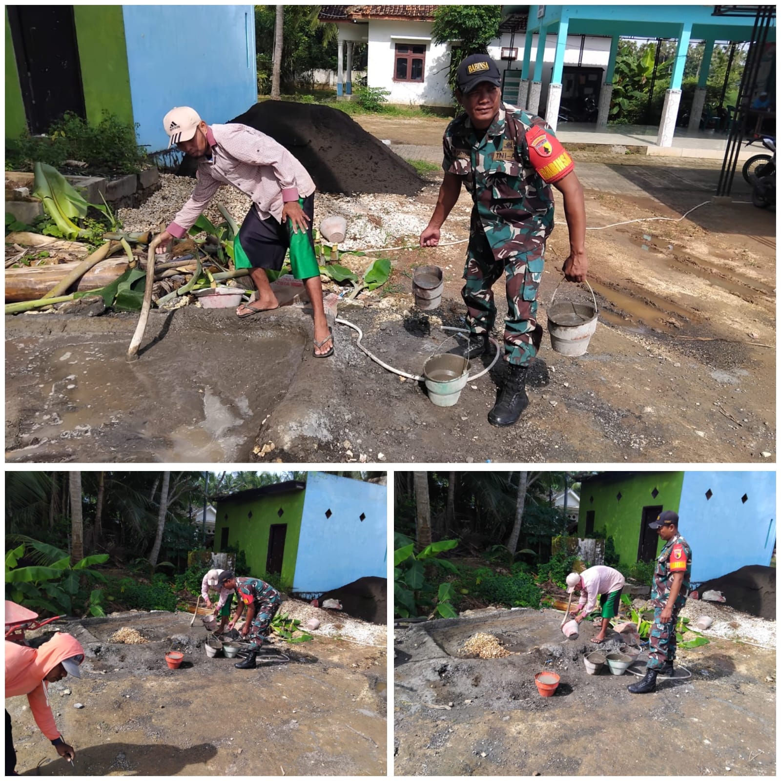 Kegiatan gotong royong tersebut dilakukan sebagai bentuk pendampingan dan dukungan Babinsa kepada masyarakat binaannya. Dengan penuh semangat, Sertu Nur Cahyo bersama warga bahu-membahu mengangkat campuran semen untuk mempercepat proses pembangunan rumah.