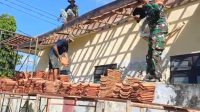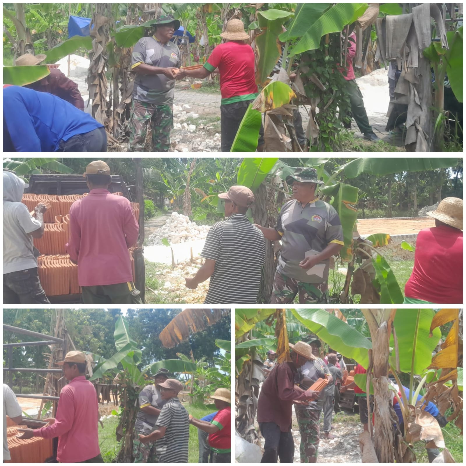 Sumenep — Babinsa Koramil 0827/09 Pragaan, Sertu Moh. Hasyim, melaksanakan kegiatan Karya Bhakti dengan membantu warga menurunkan genteng dalam proses pembangunan rumah di Desa Pragaan Laok, Kecamatan Pragaan, Kabupaten Sumenep, Rabu (03/12/2025).