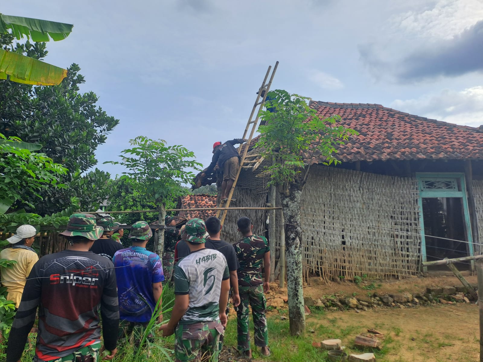 “Kami mulai dari penurunan genteng agar struktur atap bisa dibongkar dengan aman dan material yang masih layak pakai dapat dimanfaatkan kembali,” ujar Sertu Agus di lokasi kegiatan, Sabtu (14/2/2026).