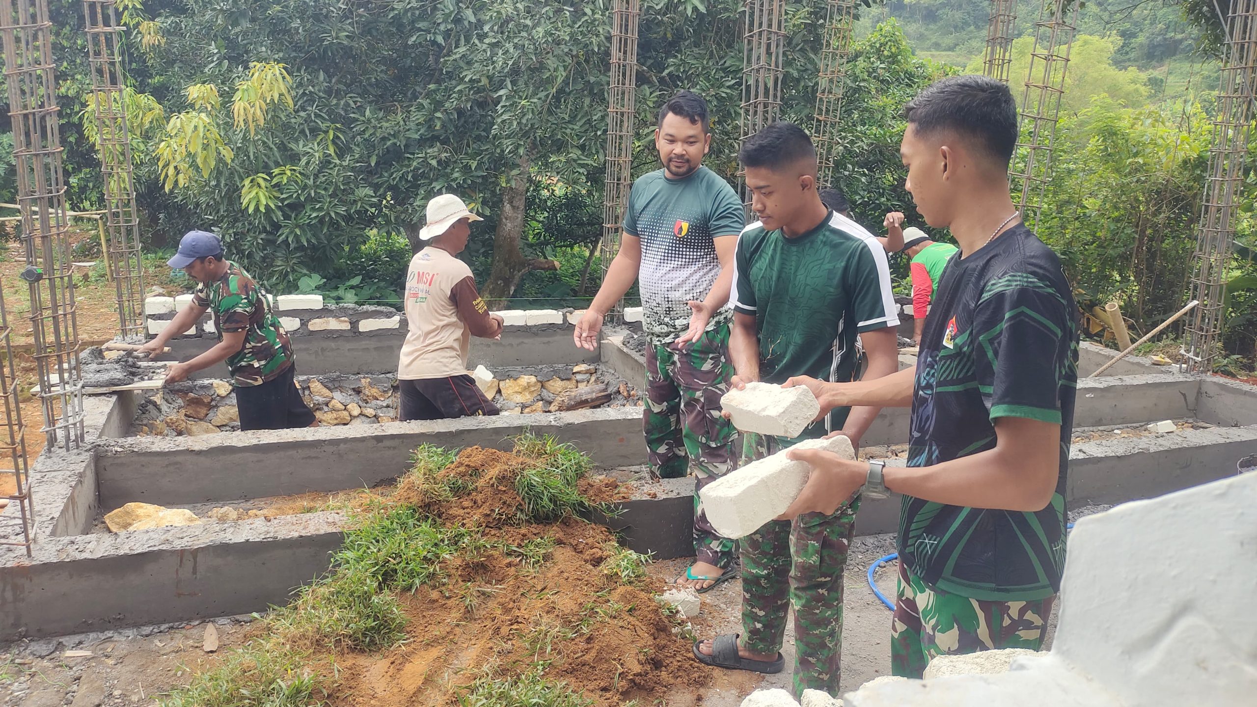 Kegiatan tersebut merupakan bagian dari sasaran fisik program TMMD yang difokuskan pada peningkatan sarana ibadah dan fasilitas umum masyarakat. Proses pengangkutan material dilakukan secara gotong royong guna mempercepat pengerjaan dinding bangunan MWK yang saat ini terus dikebut penyelesaiannya.