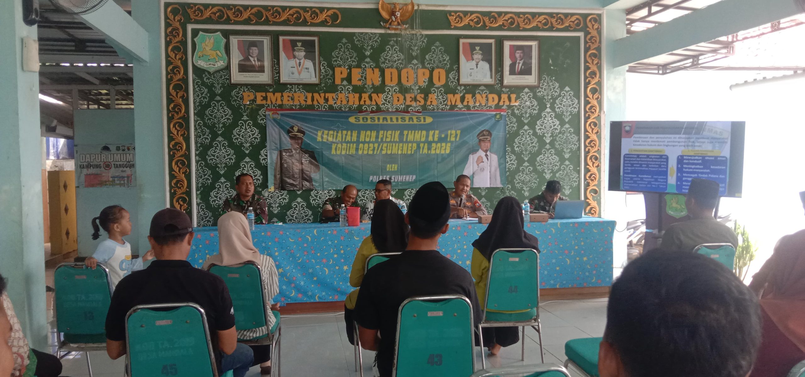 Melalui kegiatan nonfisik, Satgas TMMD menggandeng jajaran Polres Sumenep menggelar sosialisasi pembinaan dan penyuluhan keamanan dan ketertiban masyarakat (kamtibmas) di Balai Desa Mandala, Kecamatan Rubaru, Kabupaten Sumenep. Minggu (15/2/2026).