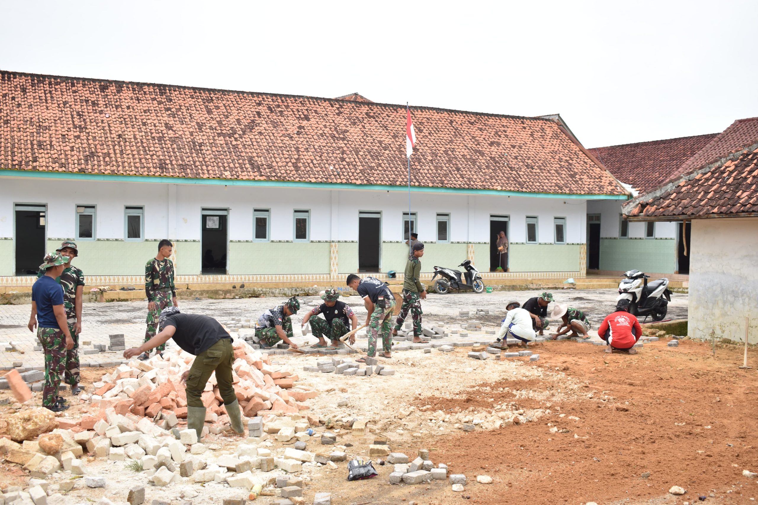 Sejak pagi hari, personel Satgas TMMD bersama masyarakat setempat tampak bahu membahu mempercepat pemasangan paving di sejumlah titik yang telah ditentukan.
