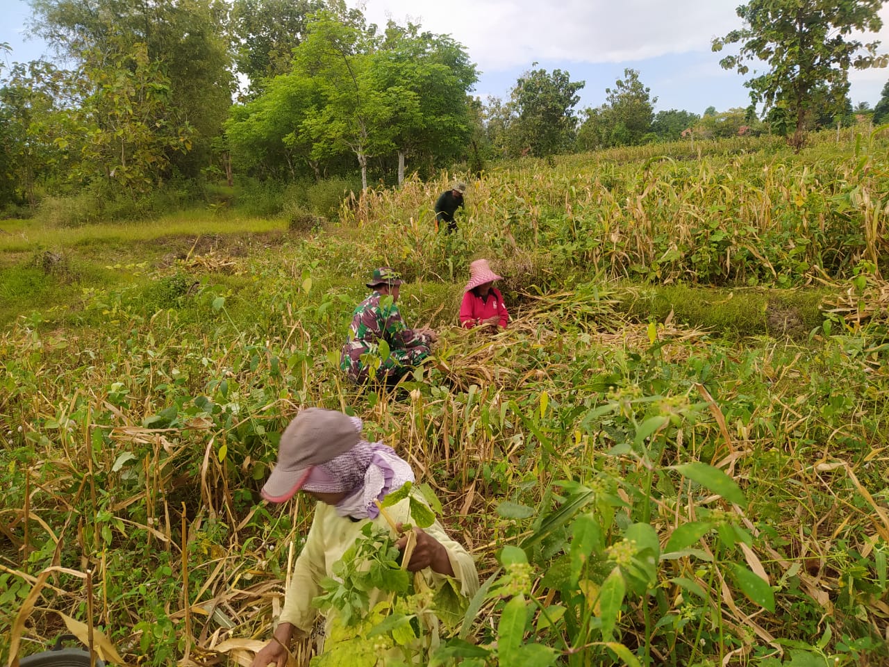 SUMENEP – Babinsa Koramil 0827/11 Pasongsongan Koptu Khamim melaksanakan pendampingan swasembada pangan membantu warga yang sedang panen jagung di Desa Pasongsongan Kecamatan Pasongsongan Kabupaten Sumenep. Senin (05/05/2025).