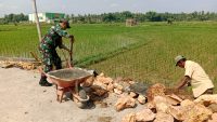 Sumenep, Jatim | suaranasionalnews.co.id – Babinsa Koramil 16/Gapura Kodim 0827/Sumenep Serka Edi Wardiyanto bersama masyarakat melaksanakan karya bhakti pembuatan saluran irigasi untuk lahan persawahan bertempat di Desa Gapura Tengah Kecamatan Gapura Kabupaten Sumenep, Rabu (5/2/2025).