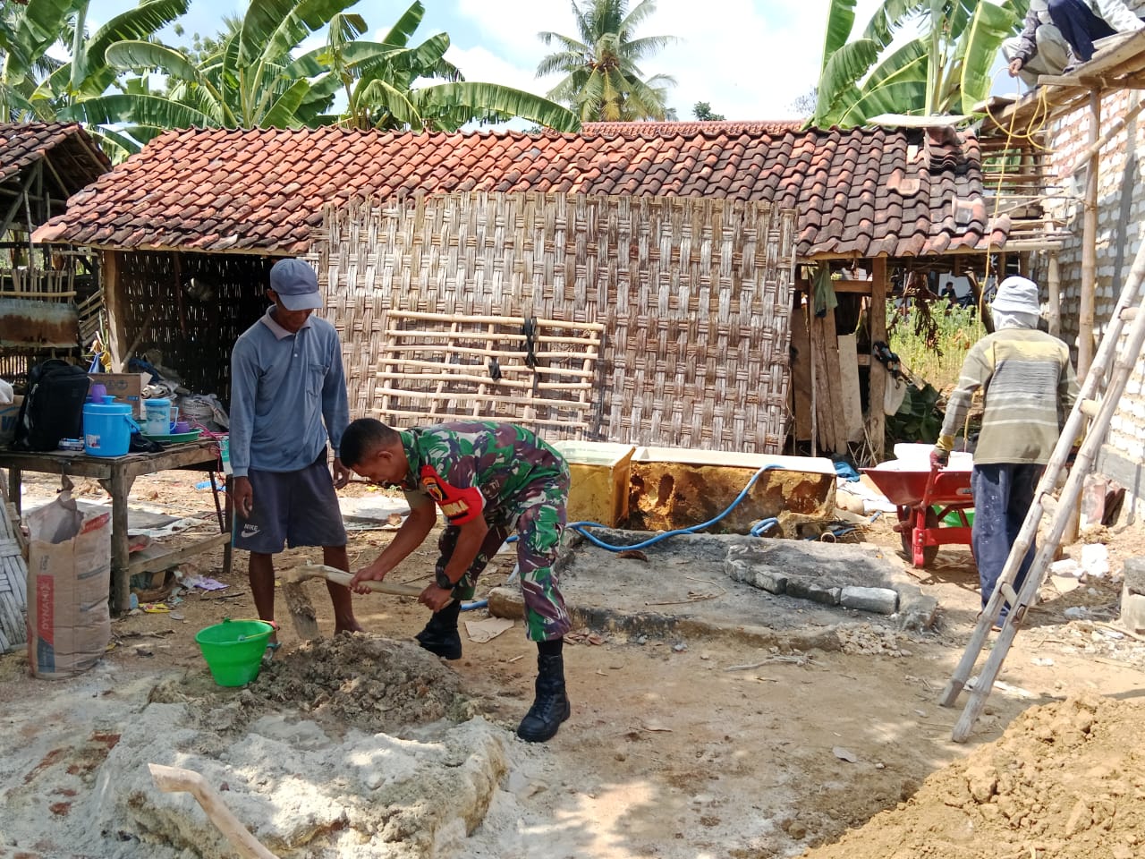 Sumenep – Dalam rangka meningkatkan kesejahteraan masyarakat dan memupuk rasa kebersamaan Babinsa Koramil 12/Dasuk Koptu Agus Rustanto melaksanakan Karya Bakti bersama warga membangun rumah di Desa Kecer Kecamatan Dasuk Kabupaten Sumenep, Rabu (22/10/2025).