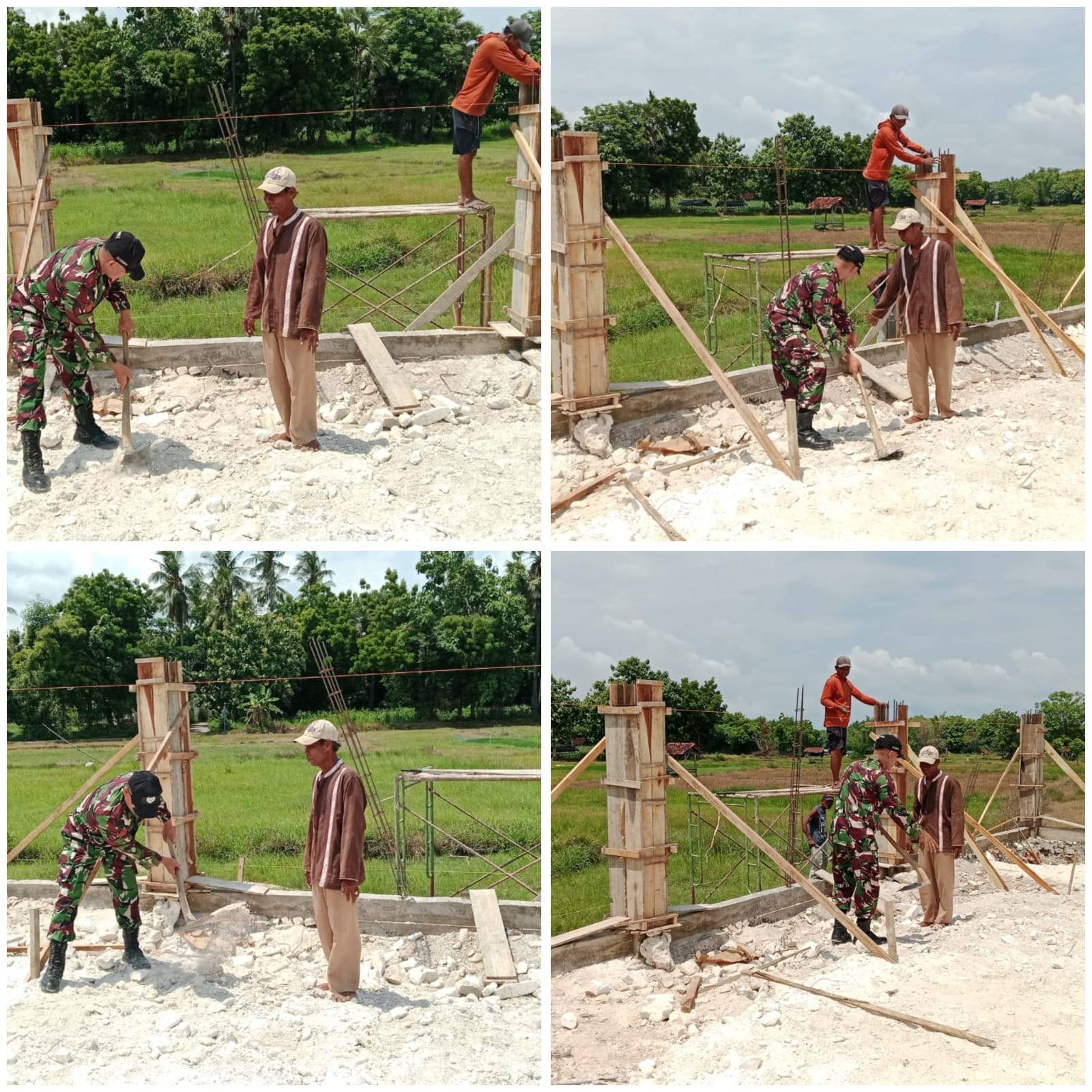 SUMENEP – Wujud kepedulian terhadap masyarakat di wilayah teritorial, Praka Muhammad Rosi Babinsa Koramil 17/Dungkek Kodim 0827/Sumenep melaksanakan kegiatan membantu warganya membangun rumah di Desa Dungkek Kecamatan Dungkek Kabupaten Sumenep, Minggu (21/12/2025).