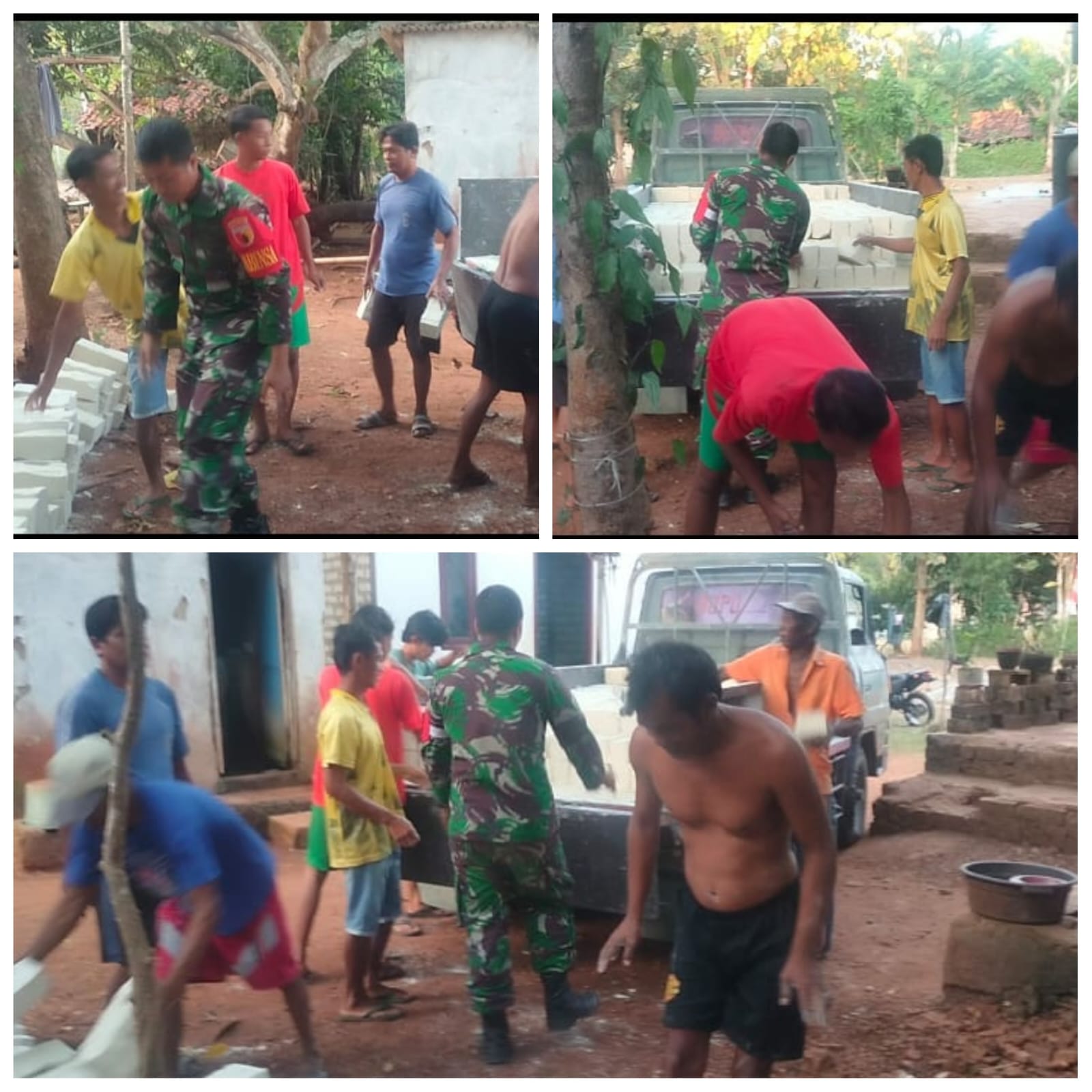 SUMENEP – Wujud kebersamaan dan meningkatkan kerja sama di wilayah binaan, Babinsa Koramil 11/Pasongsongan Kodim 0827/Sumenep Kopda Efendi melaksanakan karya bakti membantu warga angkat bata putih di Desa Pasongsongan Kecamatan Pasongsongan Kabupaten Sumenep, Rabu (26/11/2025).