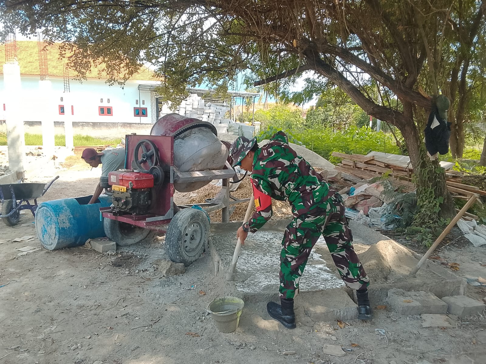 SUMENEP – Wujud nyata kepedulian TNI terhadap masyarakat kembali ditunjukkan oleh Babinsa Koramil 21/Raas Kodim 0827/Sumenep Serda Yudi yang turut membantu warga dalam kegiatan pengecoran pondasi bangunan di Desa Poteran Kecamatan Raas Kabupaten Sumenep, Minggu (19/4/2026).