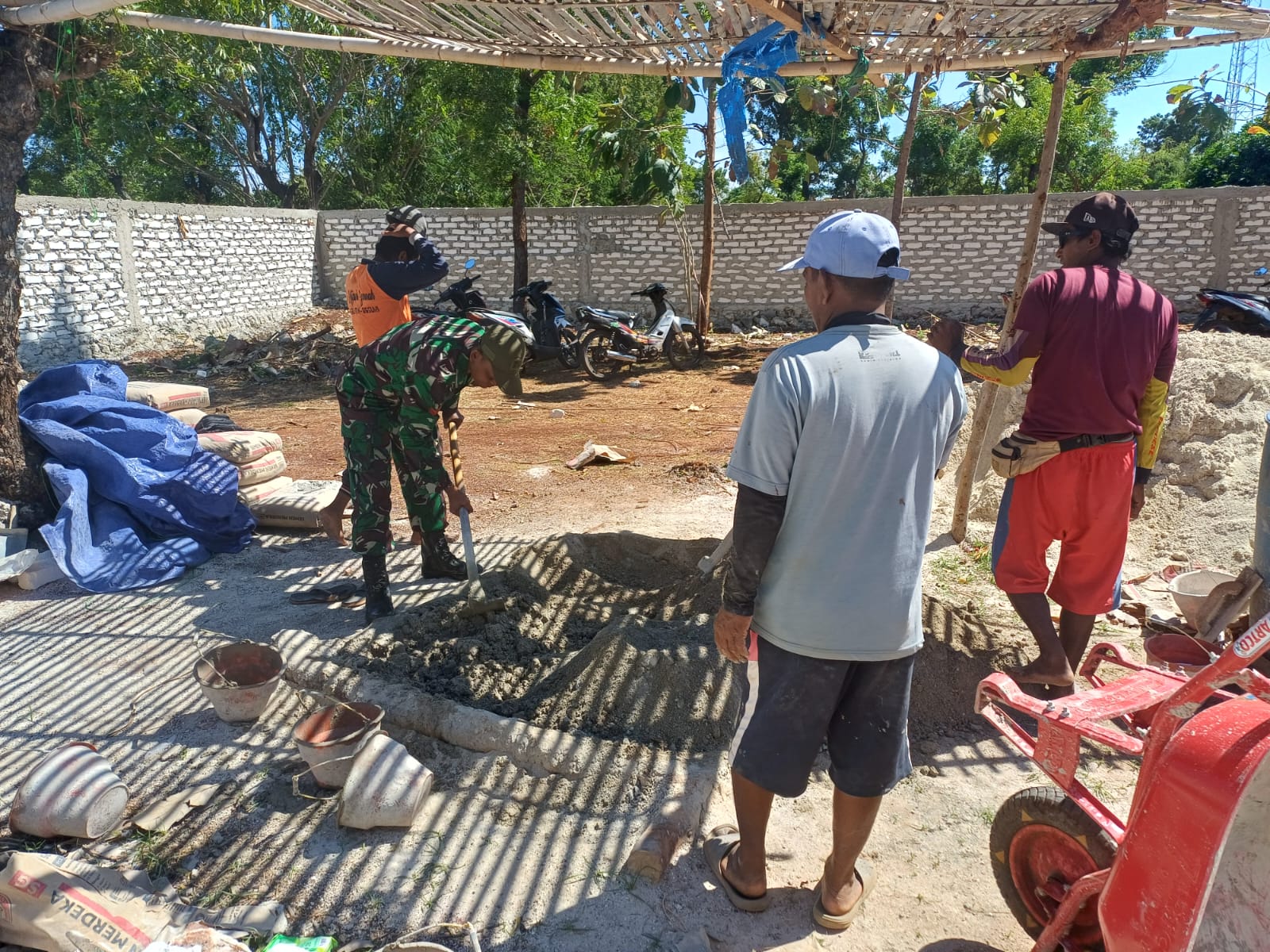 SUMENEP – Wujud kebersamaan dan berperan aktif mengatasi kesulitan rakyat di wilayah binaan dituangkan oleh Babinsa Koramil 21/Raas Kodim 0827/Sumenep Koptu Anton Dwi dengan melibatkan diri secara langsung dalam pelaksanaan gotong royong membangun rumah warga binaannya di Desa Karsng Nangka Kecamatan Raas Kabupaten Sumenep, Kamis (28/8/2025).