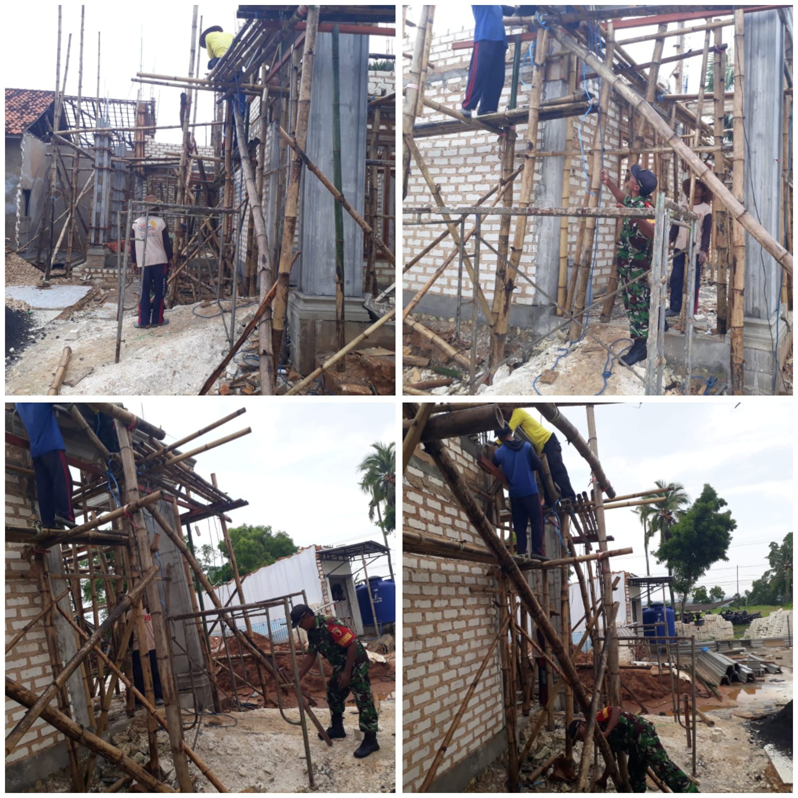 Serka Bagus PW bersama warga setempat bergotong royong mendirikan struktur bangunan rumah milik Bapak Matduri. Kehadiran Babinsa di tengah masyarakat turut memberikan motivasi dan semangat kepada warga agar terus menjaga budaya gotong royong.