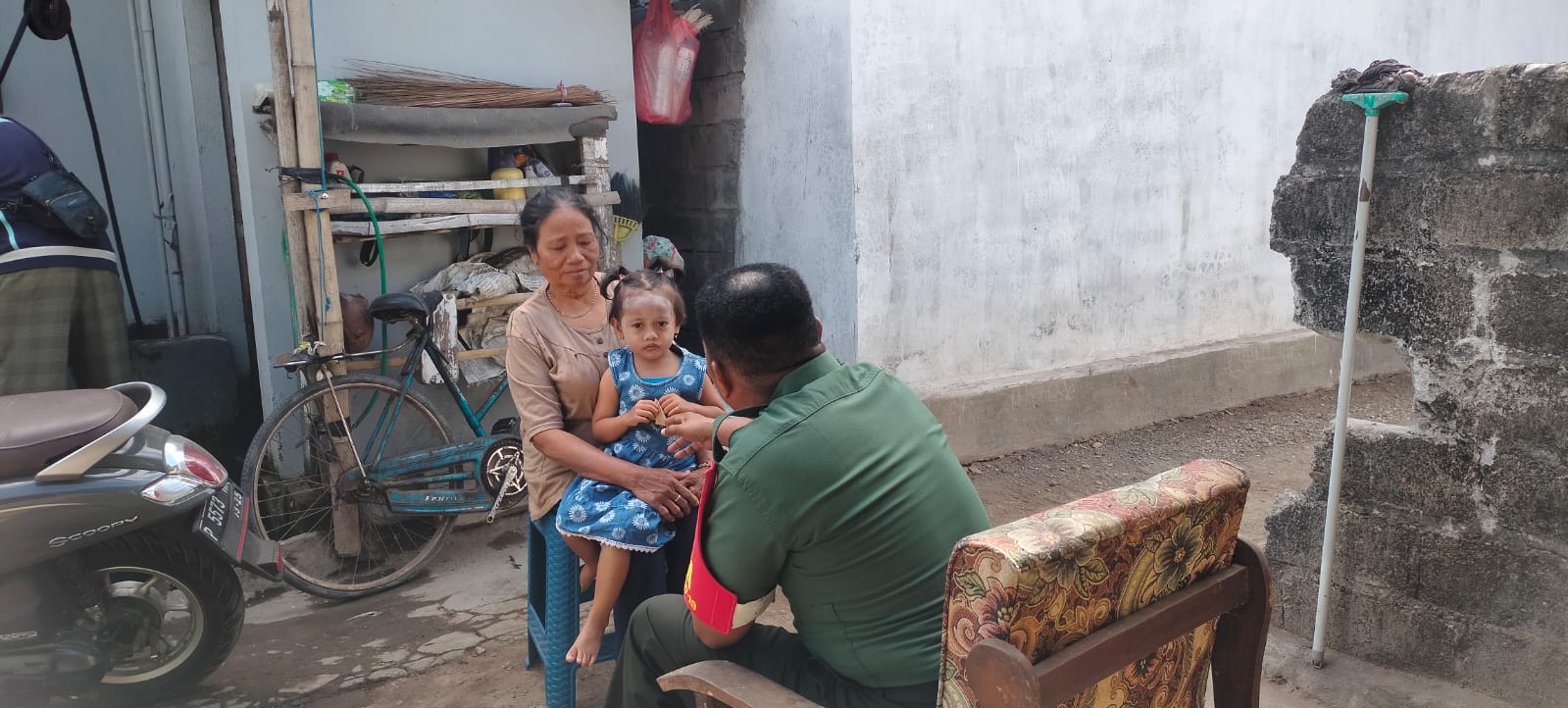 SUMENEP — Dalam rangka mendukung program pemerintah untuk menurunkan angka stunting di wilayah pedesaan, Babinsa Koramil 19/Sapeken Kodim 0827/Sumenep, Serka Pahlawan, melaksanakan kegiatan pendataan dan pengecekan kondisi anak-anak yang terindikasi stunting di Desa Pegerungan, Kecamatan Sapeken, Kabupaten Sumenep, Madura, Jawa Timur, Senin (3/11/2025).