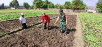 Dalam pendampingan yang dilakukan, Babinsa membantu bapak Sunoto mengolah tanah membuat gundukan tanah dalam rangka persiapan penanaman bibit sayuran.