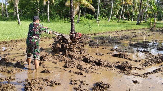 Babinsa di Kepulauan Masalembu Bantu Petani Bajak Sawah, Persiapan Tanam Padi