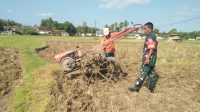 Babinsa Gapura Bantu Petani Bajak Sawah di Banjar Barat