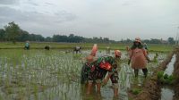 Babinsa Koramil 01/Kota Sertu Rhomaudin Laksanakan Pendampingan Petani Semprot Hama Padi Paska Tanam Ke Tiga
