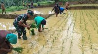 Cukupi Kebutuhan Pangan, Babinsa bersama Petani Lakukan Gerakan Tanam Padi MT II