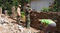 Babinsa Bantu Warga Bangun Pagar Rumah di Desa Basoka