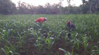 Babinsa Bantu Petani Bersihkan Gulma Tanaman Jagung di Desa Binaan