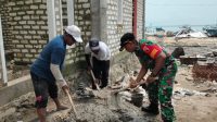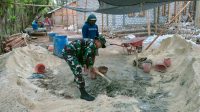 Bantu Aduk Campuran Semen Dan Pasir, Babinsa Gotong Royong Dengan Masyarakat Bangun Rumah Warga