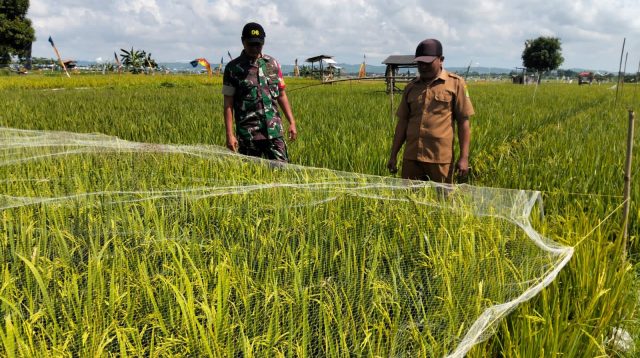 Dampingi petani, Babinsa Praka Andika Cek Pertumbuhan Tanaman padi