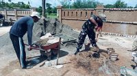 Aduk Campuran Semen Dan Pasir, Babinsa Gotong Royong Bantu Warga Binaan