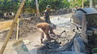 Bantu Aduk Campuran Semen, Bentuk Upaya Babinsa Koramil 17/Dungkek Ringankan Beban Warga