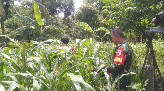 Babinsa Koramil 22/Masalembu Bantu Petani Bersihkan Kebun Jagung