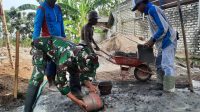 Wujud Kepedulian, Babinsa Pragaan Bantu Warga Aduk Campuran Semen