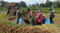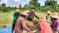 Babinsa Turun Ke Sawah Bantu Petani Panen Padi di Bantelan
