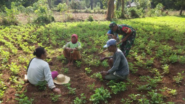 Lakukan Perawatan Pada Tanaman Kacang Tanah, Babinsa Talango Bantu Petani Bersihkan Rumput