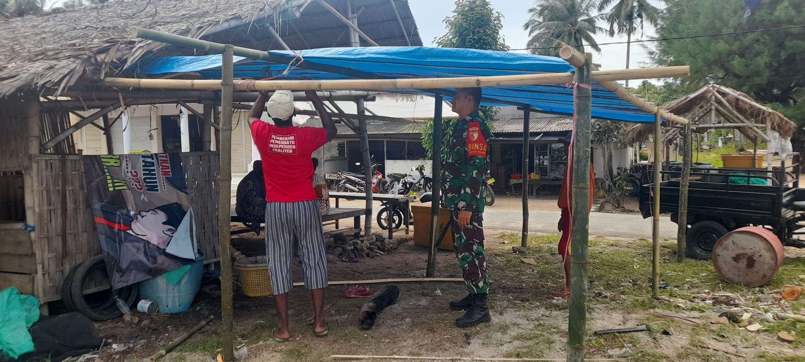 SUMENEP – Memberikan bantuan tenaga kepada warganya Babinsa Koramil 22/Masalembu Kodim 0827/Sumenep Sertu Annas Vertro Wijaya membantu memperbaiki warung yang rusak. Tepatnya, di Desa Masalima Kecamatan Masalembu Kabupaten Sumenep, Senin (22/9/2025).