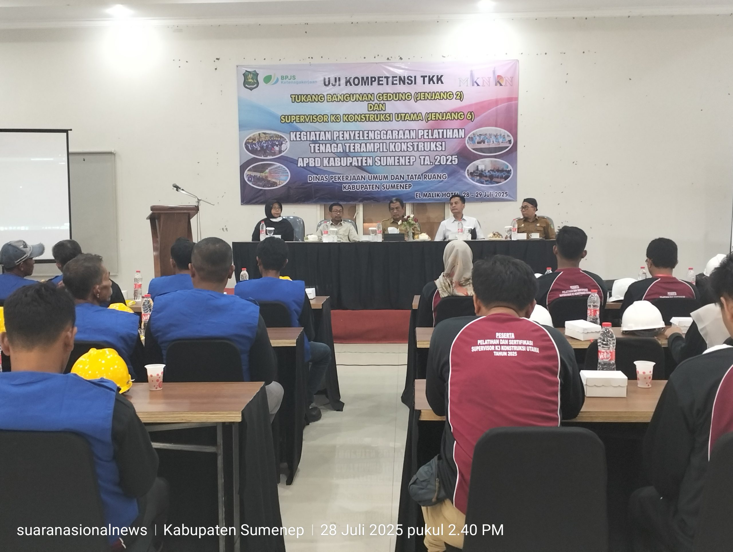 Sumenep , Jatim|suaranasionalnews.co.id – Sebagai bentuk komitmennya dalam mewujudkan Sumenep emas yang berkualitas, Dinas Pekerjaan Umum dan Tata Ruang (PUTR) Kabupaten Sumenep melaksanakan uji kompetensi bagi tenaga kerja yang bergerak di bidang kontruksi.