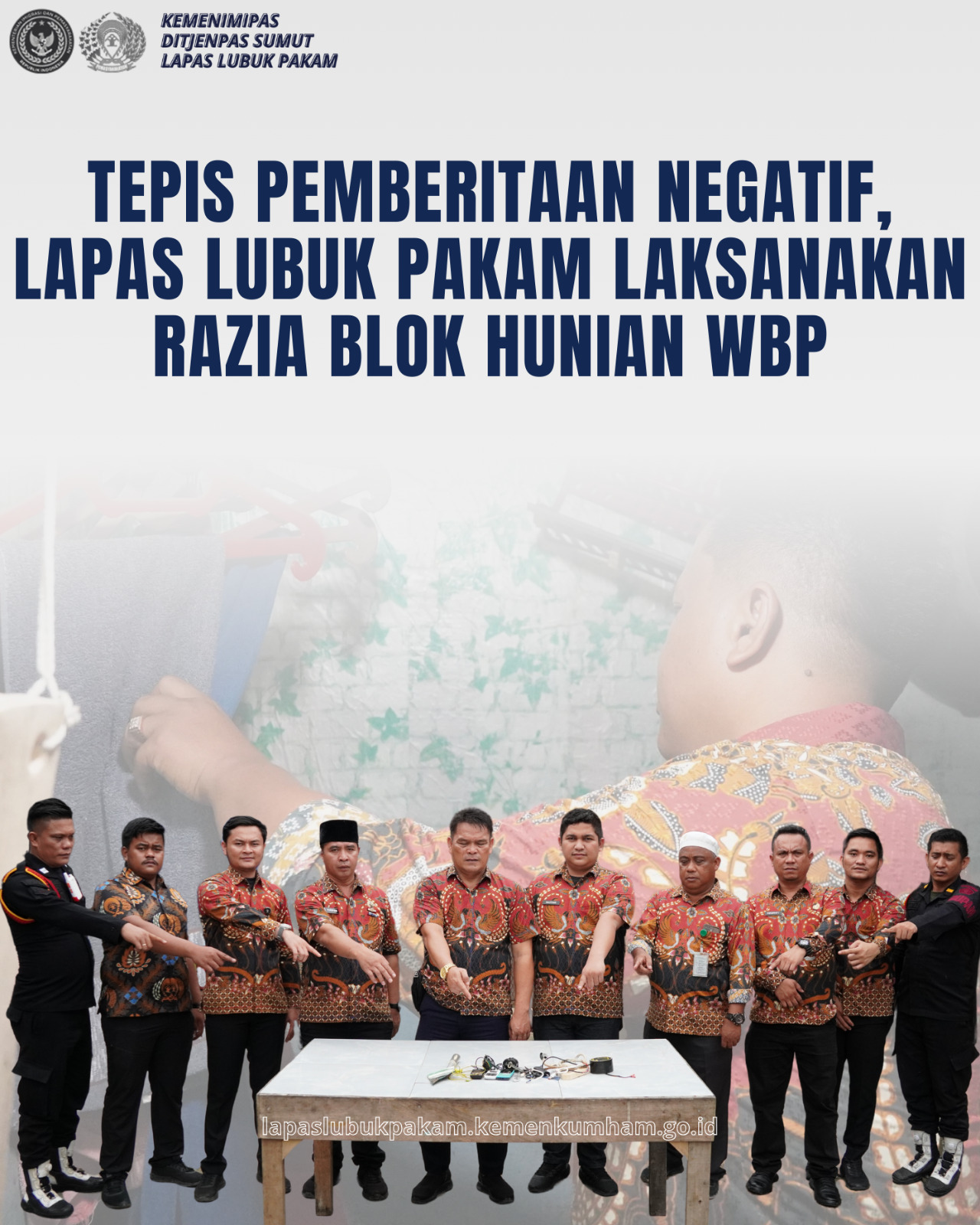 Kegiatan razia insidentil ini merupakan atensi langsung Hakim Sanjaya selaku Kalapas Lubuk Pakam yang diwakili langsung Kasi Adm. Kamtib, Tiopan Situmorang dan didampingi oleh Kenal Purba selaku Kepala Pengamanan; Kasi Binadik & Giatja, Bastian Surya Manik; Kasubsi Perawatan, Sukadi; Kasubsi Peltatib, Gebriel Sembiring serta Jajaran Pengamanan langsung merapakatkan barisannya untuk segera menggelar Razia. Sebelum melakukan Razia, Tiopan menyampaikan terima kasih kepada seluruh jajaran pengamanan yang telah meluangkan waktunya guna melakukan Razia. Ia juga menyampaikan bahwa tujuan dari Razia yang dilakukan hari ini selain sebagai kegiatan rutin kita juga sebagai klarifikasi terkait adanya dugaan peredaran Narkoba dan kamar lodes yang terjadi di Lapas Lubuk Pakam.
