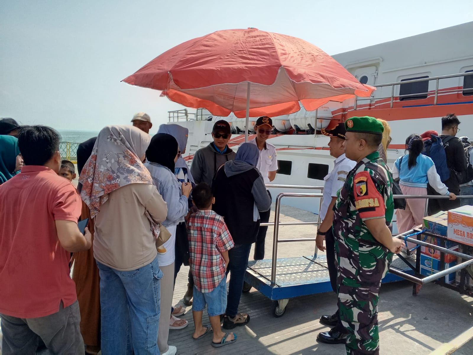 SUMENEP – Kawal ketat di pelabuhan penyebrangan babinsa 0827/02 Kalianget Koptu Tomy melaksanakan pengamanan kepada penumpang dan keberangkatan Kapal Express Bahari 9C yg akan berangkat menuju pulau Kangean guna mencegah terjadinya hal hal yang tidak diinginkan yang bertempat di Pelabuhan Pelindo Kalianget Desa Kalianget Timur Kecamatan Kalianget Kabupaten Sumenep, Kamis (26/6/2025).