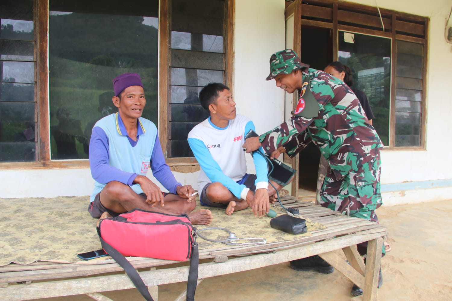 Pemeriksaan dilakukan oleh Satgas TMMD Serda Dofir bersama tim kesehatan lapangan. Sejumlah warga yang ikut membantu pengerjaan jalan, MCK, dan Rumah Tidak Layak Huni (RTLH) menjalani pengecekan tekanan darah, suhu tubuh, serta pemeriksaan kondisi umum.