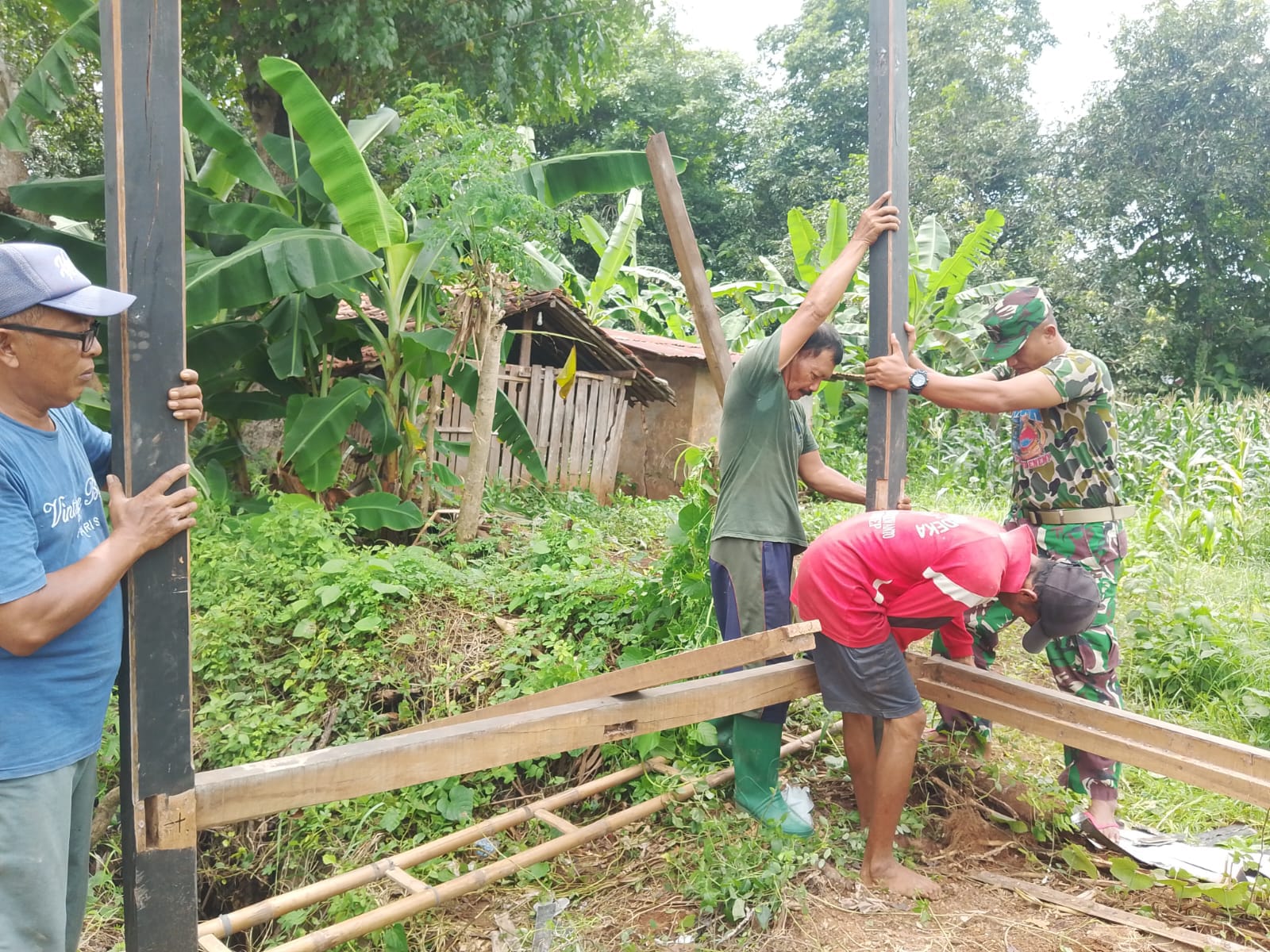 SUMENEP – Guna meningkatkan keamanan lingkungan dan mencegah timbulnya kejadian yang dapat merugikan masyarakat. Babinsa Koramil 0827/06 Saronggi membantu warga dengan karya bakti pembangunan Pos Kamling di Desa Saroka, Kecamatan Saronggi, Kabupaten Sumenep. Kamis (01/05/2025).