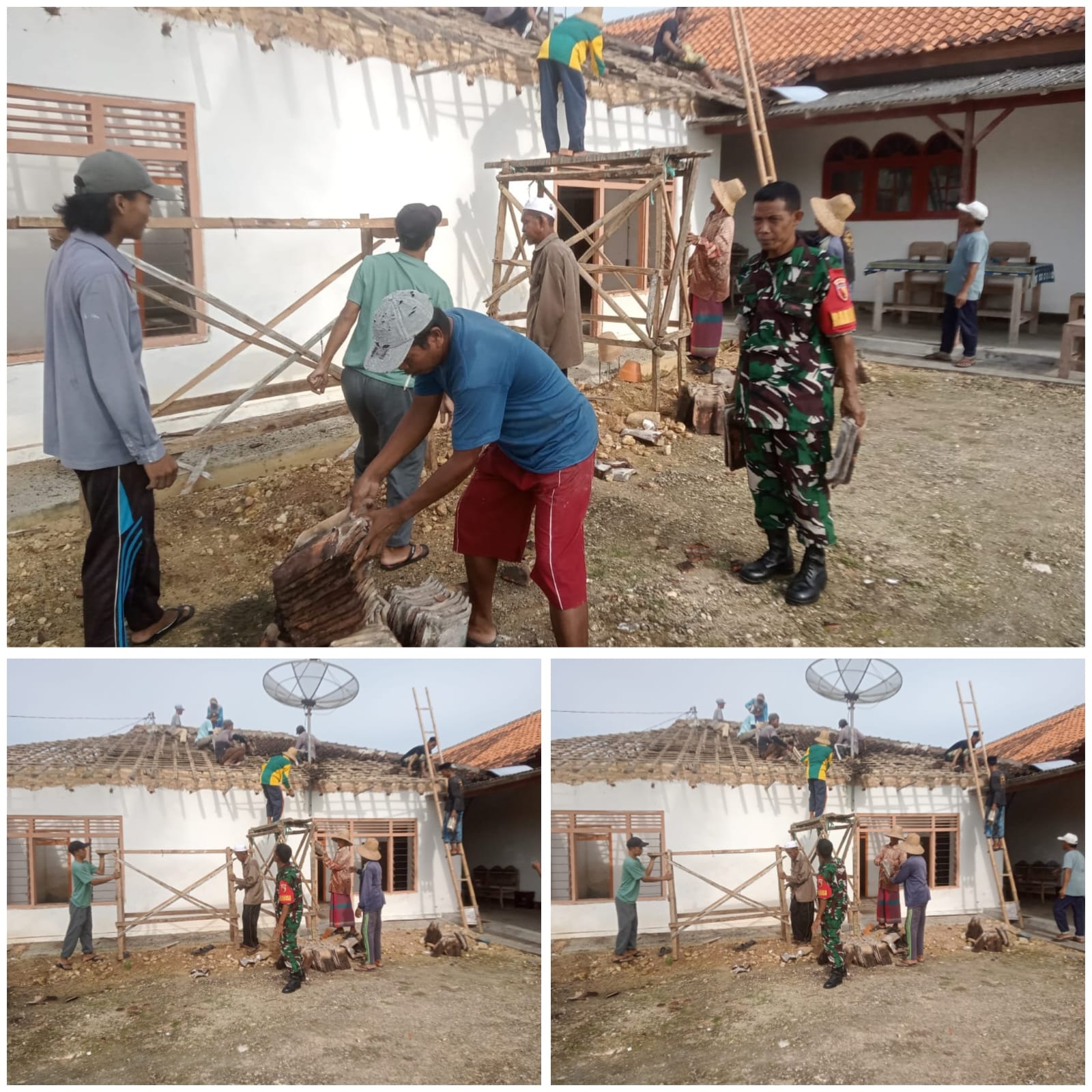 SUMENEP – Babinsa Koramil 0827/16 Gapura, Serka M. Rasul, bersama warga melaksanakan kegiatan kerja bakti menurunkan genting rumah dalam rangka rehabilitasi rumah warga di Desa Banjar Kalimantan, Kecamatan Gapura, Kabupaten Sumenep, Madura, Jawa Timur, pada Kamis (8/1/2026).