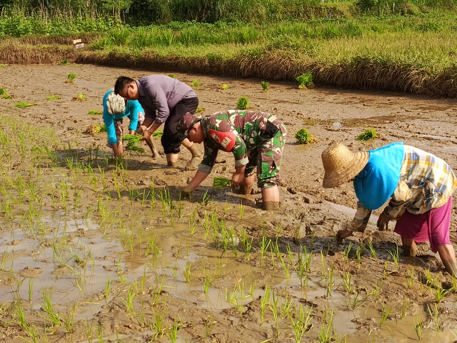 Kegiatan tanam padi IP 200 juga melibatkan personel Korluh, PPL Kecamatan Rubaru, Polsek Rubaru, dan ketua Kelompok Tani Restu Baru.