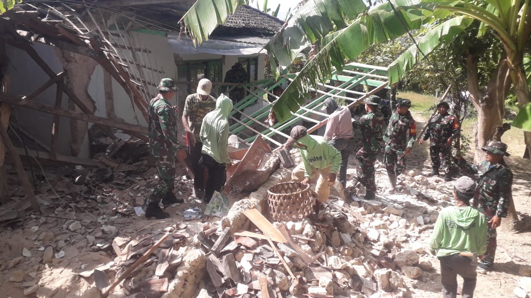 Gempa yang terjadi beberapa hari sebelumnya menyebabkan kerusakan ringan hingga sedang pada sejumlah rumah warga. Sebagai bentuk respons cepat, Sertu Hedir turun langsung ke lokasi terdampak, bergotong royong bersama warga membersihkan puing-puing dan membantu mengevakuasi barang-barang yang masih bisa diselamatkan.