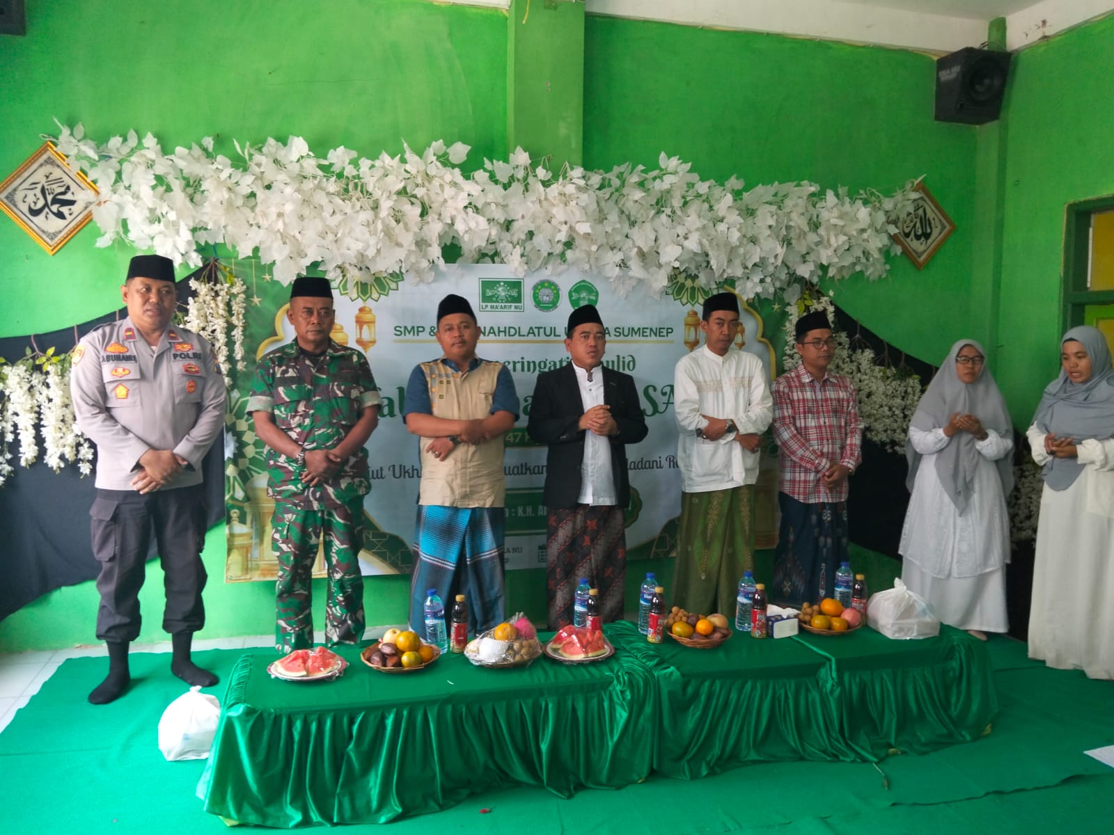 SUMENEP – Bati Tuud Koramil 0827/01 Kota, Serma Sugeng Siswanto, hadir dalam acara peringatan Maulid Nabi Besar Muhammad SAW di SMA NU Sumenep, Sabtu (20/9/2025).
