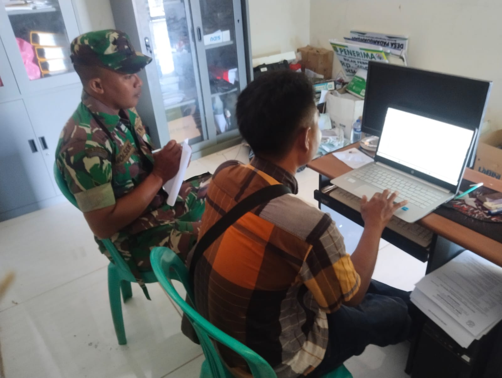 SUMENEP – Terus memperbarui data wilayah binaan, Babinsa Koramil 11/Pasongsongan Kodim 0827/Sumenep Serda Sidik melaksanakan Pull data Ter Bersama Perangkat Desa bertempat di Kantor Desa Panaongan Kecamatan Pasongsongan Kabupaten Sumenep, Selasa (19/8/2025).
