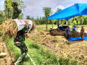 Para Babinsa turun ke sawah mendampingi petani dari pengolahan lahan hingga tuntas panen, demi menjaga swasembada pangan.
