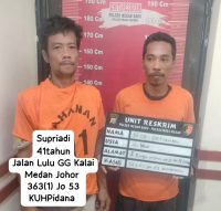 Kedua pelaku bernama Supriadi (44) warga Jalan Luku I Gg Kali Kelurahan Kuala Bekala Kec Medan Johor dan Robi Setiawan (41) warga Jalan Bunga Wijaya Kusuma Pasar IV Kelurahah PB Selayang II Kecamatan Medan Selayang.