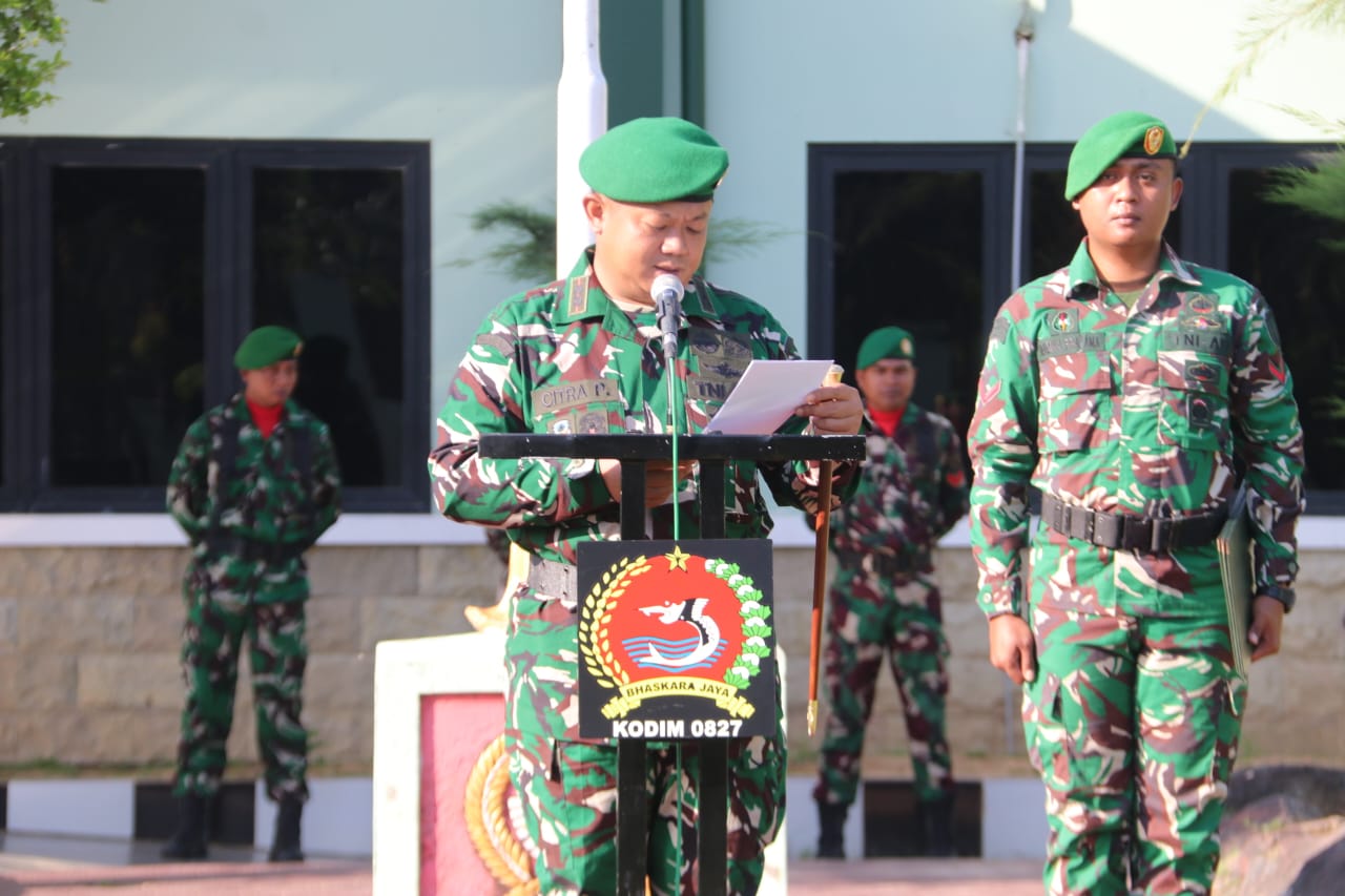 Dalam kesempatan itu, Dandim 0827/Sumenep membacakan amanat Panglima TNI Jenderal TNI Agus Subiyanto yang menekankan pentingnya semangat pengabdian, loyalitas, serta kesiapsiagaan seluruh prajurit di tengah dinamika situasi global, regional, dan nasional yang terus berkembang.