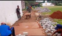 Babinsa serda Azis bersama masyarakat bahu membahu memperbaiki dan mengangkat material untuk laksanakan gotong royong memperkeras jalan desa di wilayah Binaan dengan memasang paving blok.
