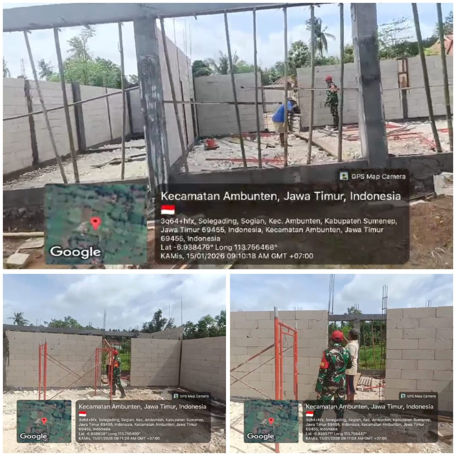 SUMENEP – Babinsa Koramil 0827/10 Ambunten terus melakukan monitoring pembangunan Koperasi Desa Kelurahan Merah Putih (KDKMP) yang berlokasi di Dusun Sogian, Desa Sogian, Kecamatan Ambunten, Kabupaten Sumenep, Kamis (15/1/2026).