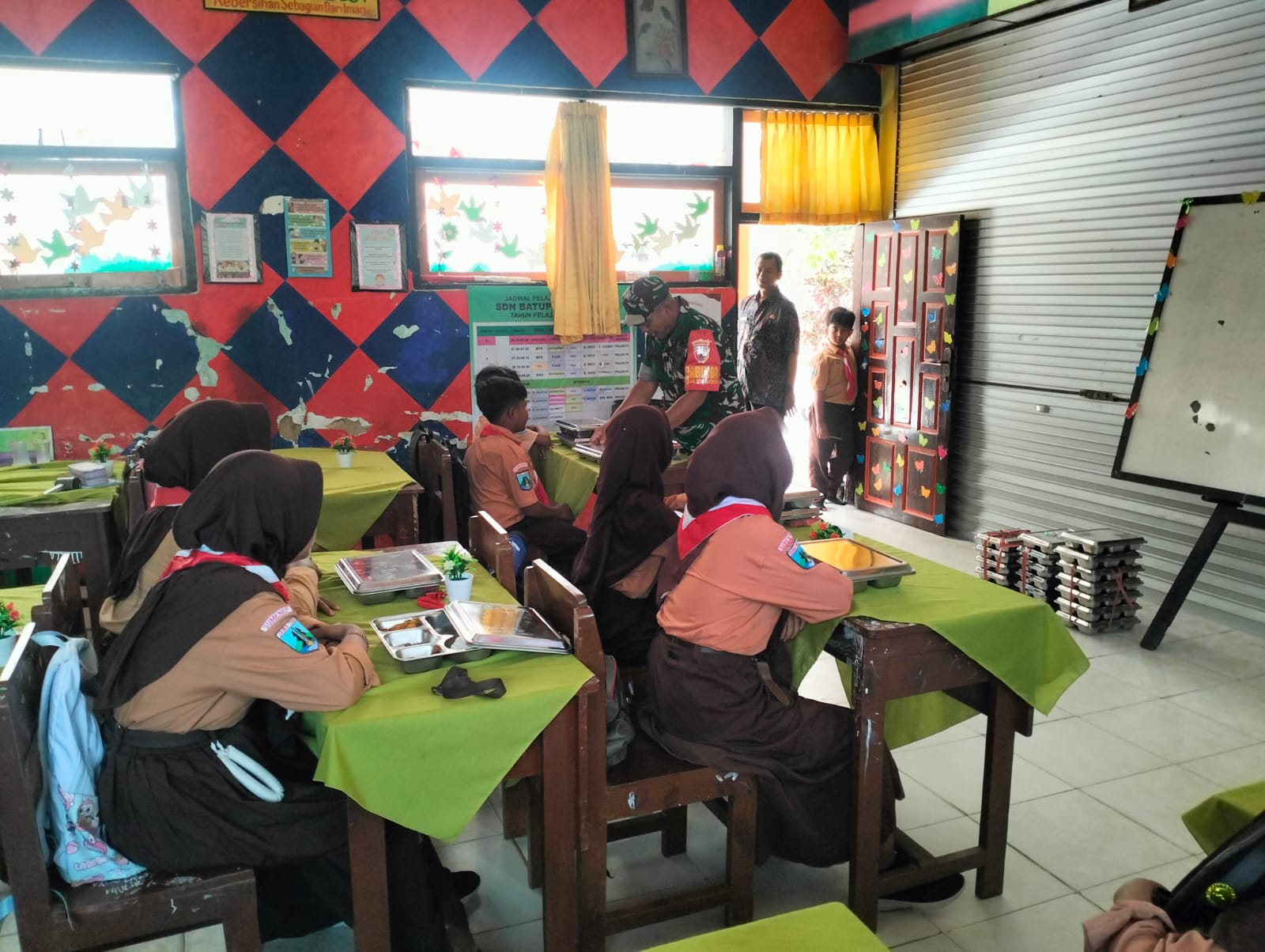 “Kami mendampingi petugas dari dinas terkait agar kegiatan berjalan tertib, aman, dan anak-anak bisa menikmati makanan bergizi sesuai program pemerintah,” ujar Serka Moh. Soleh di sela kegiatan.