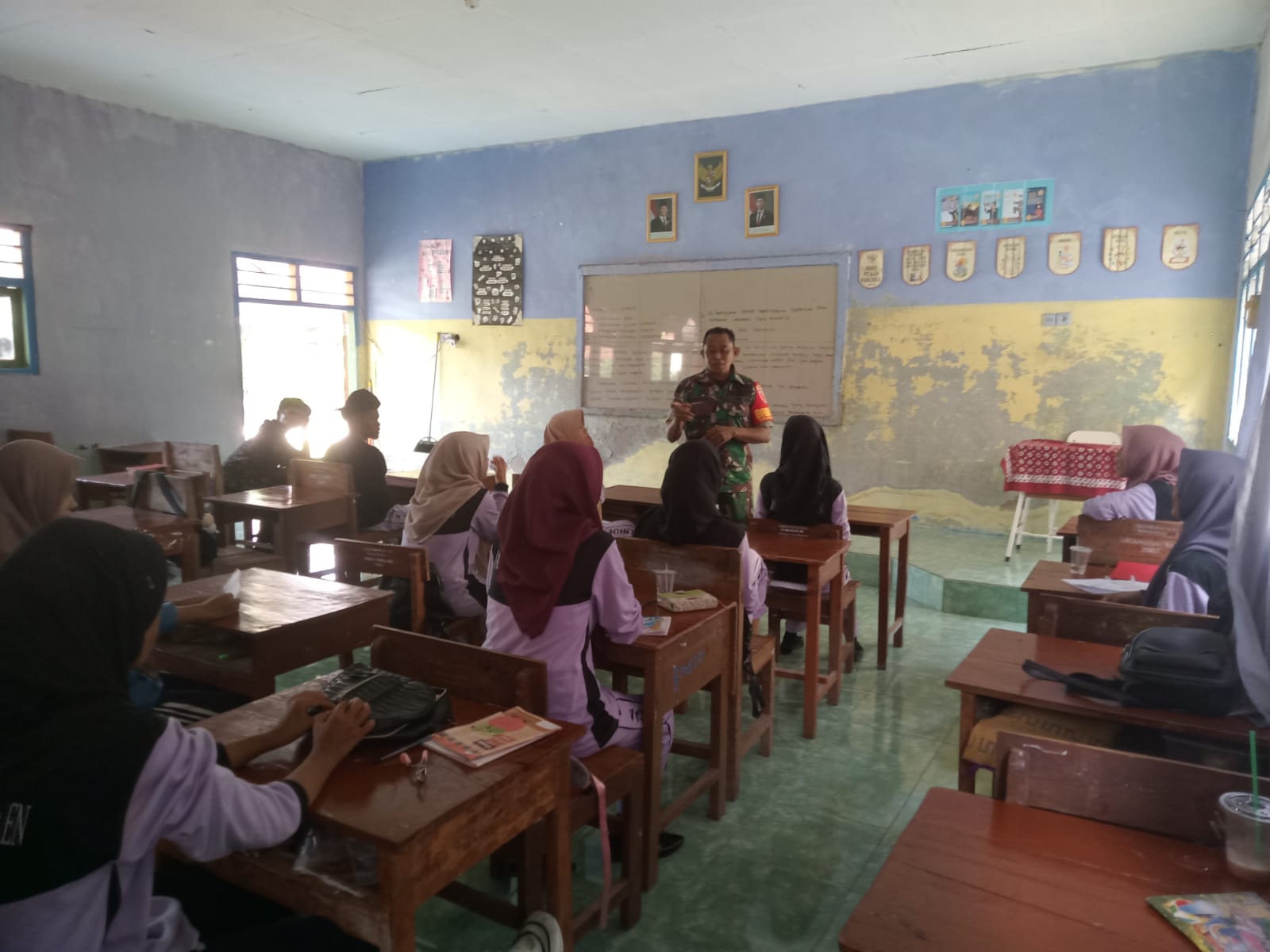SUMENEP – Dalam upaya menanamkan nilai-nilai nasionalisme kepada generasi muda, Babinsa Koramil 19/Sapeken Sertu Nurdin Daeng memberikan materi Wawasan Kebangsaan (Wasbang) kepada para siswa SMAN 1 Sapeken, Kabupaten Sumenep. Kamis (20/11/2025).