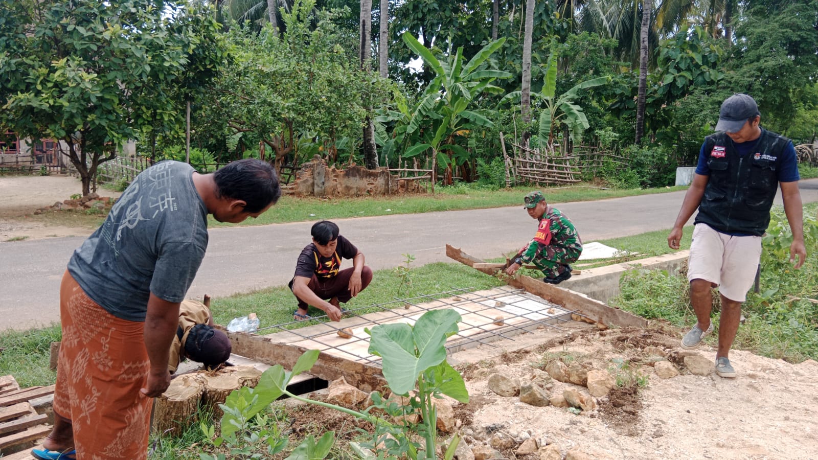 SUMENEP – Babinsa Koramil 18/Kangean Kodim 0827/Sumenep Serda Sutriyanto melaksanakan kegiatan kerja bakti membuat jembatan di Desa Sambakati Kecamatan Arjasa Kabupaten Sumenep, Jumat (25/4/2025).