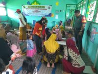 Sumenep, Jatim | suaranasionalnews.co.id – Babinsa Koramil 0827/01 Kota Kopka Taufiqurohman terlihat mendampingi balita yang sedang mengikuti layanan kesehatan di Balai Desa Pandian RT.03 RW.02, Kecamatan Kota Sumenep.